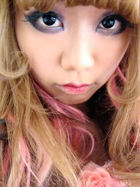 As I already wore make-up I didn´t want remove it so I just applied make-up over my casual make-up. Maybe not many of you guys know it, but I used to wear a lot of purple eye-shadow back in the old days, but then I went over to gyaru and thought it didn´t really fit. Pity because I like it a lot.